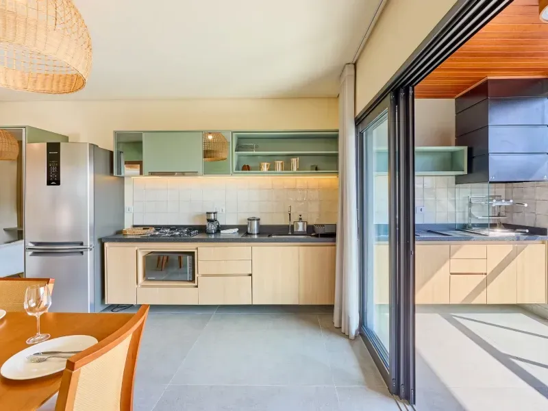 Inaugurado em 2025, esse apartamento com vista para o mar é ideal para você e sua família, área de sala e cozinha integrada, com uma decoração elegante e confortável.